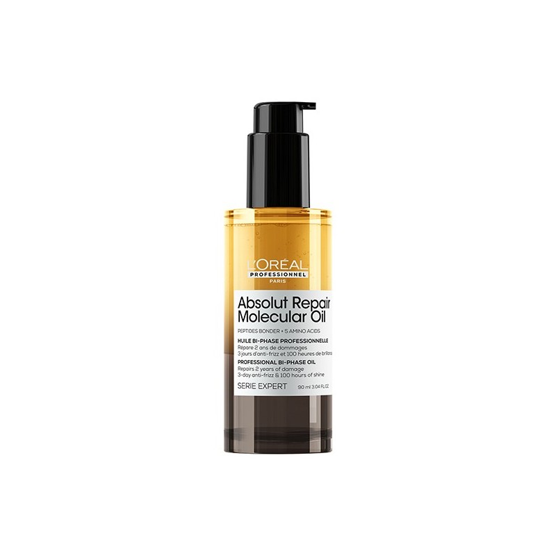El Aceite Bifásico Absolut Repair Molecular de L'Oréal Professionnel es un tratamiento profesional diseñado para todo tipo de cabellos dañados: teñidos, decolorados o naturales.