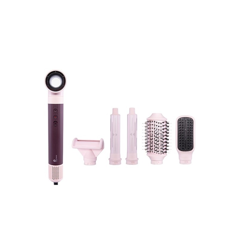 Secador profesional 6 en 1 con motor brushless de alta velocidad para un secado potente y rápido. Incorpora tecnología de iones negativos para reducir el encrespamiento y aporta brillo. Incluye 6 cabezales intercambiables, junto a 3 velocidades y 3 niveles de temperatura con indicación LED.